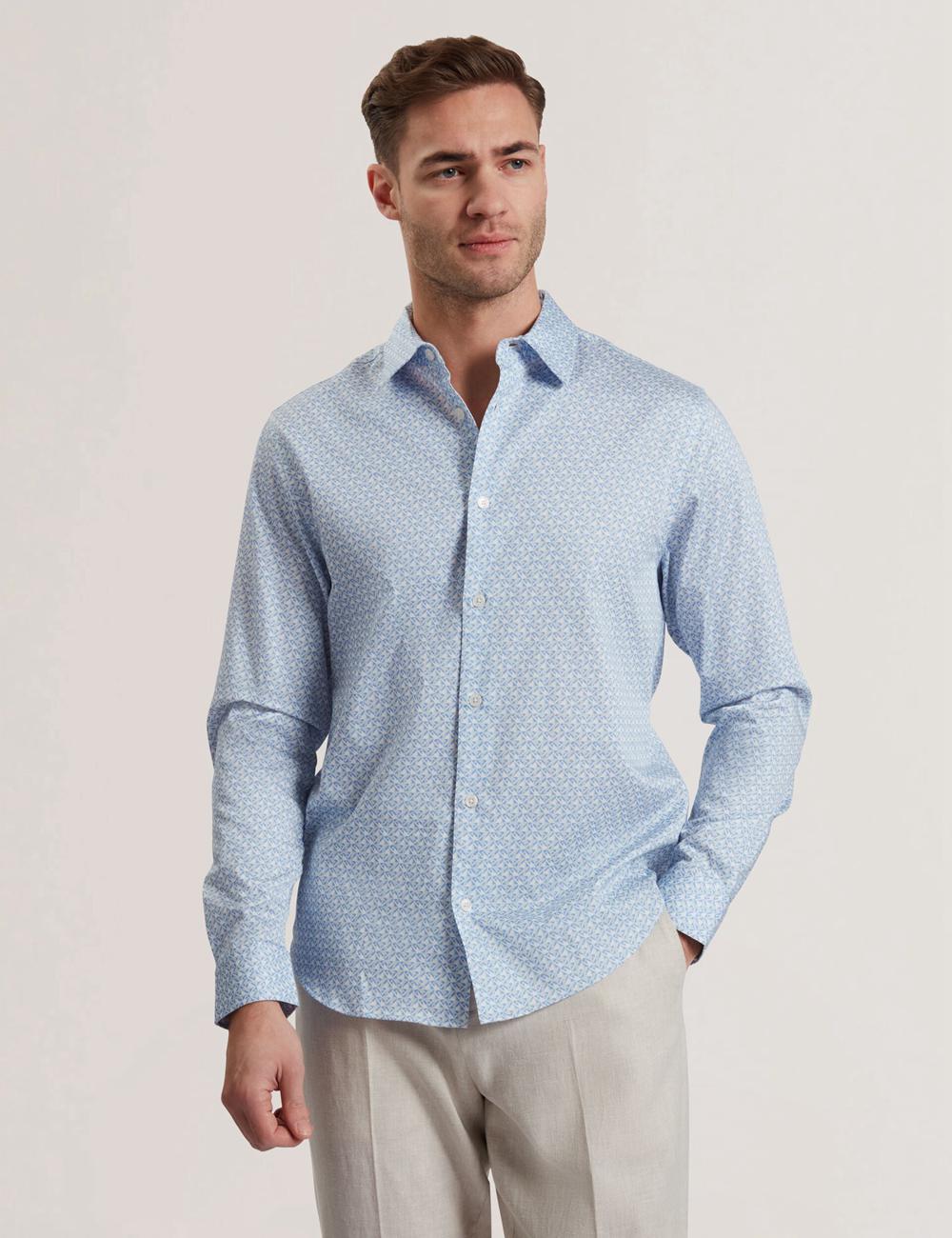 Mid-Blue Ted Baker ALPHAIS - Regular Fit Geometric Pure Cotton Men Casual Shirts | Ireland 3214-ICKHM